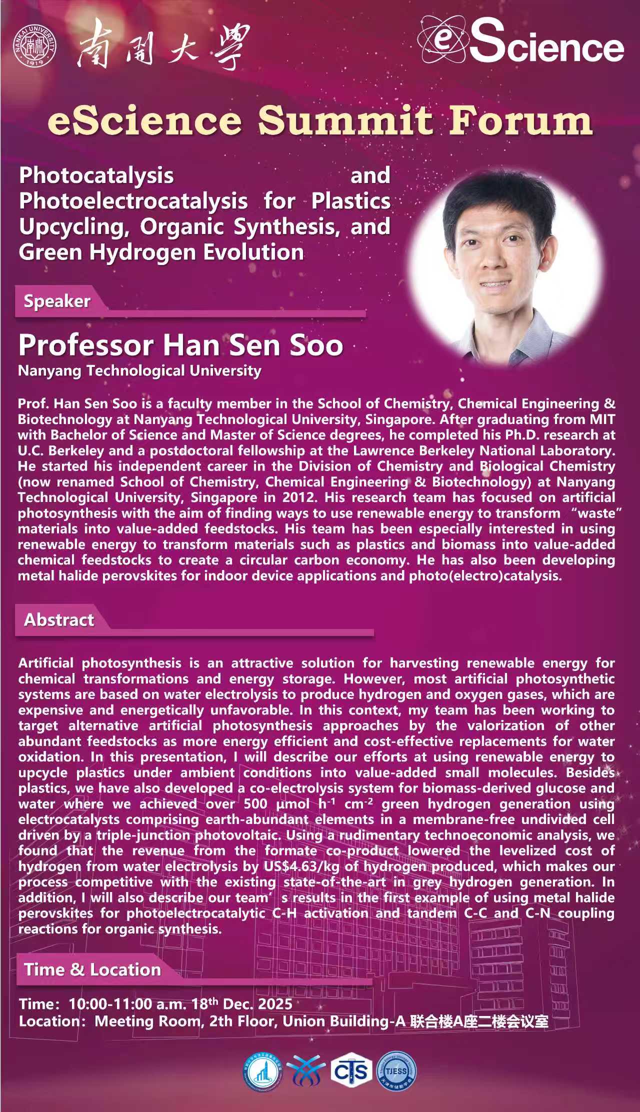 eScience Summit Forum-Photocatalysis and Photoelectrocatalysis for Plastics Upcycling,Organic Synthesis-